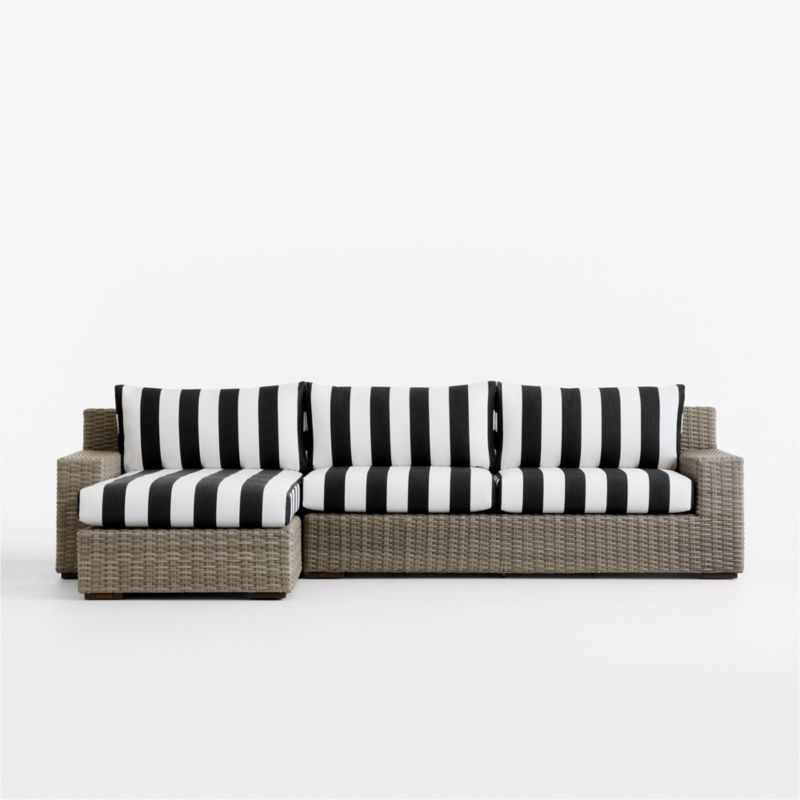 Abaco Resin Wicker 2-Piece Left-Arm Chaise Outdoor Sectional Sofa with Black and White Cabana Stripe Sunbrella ® Cushions