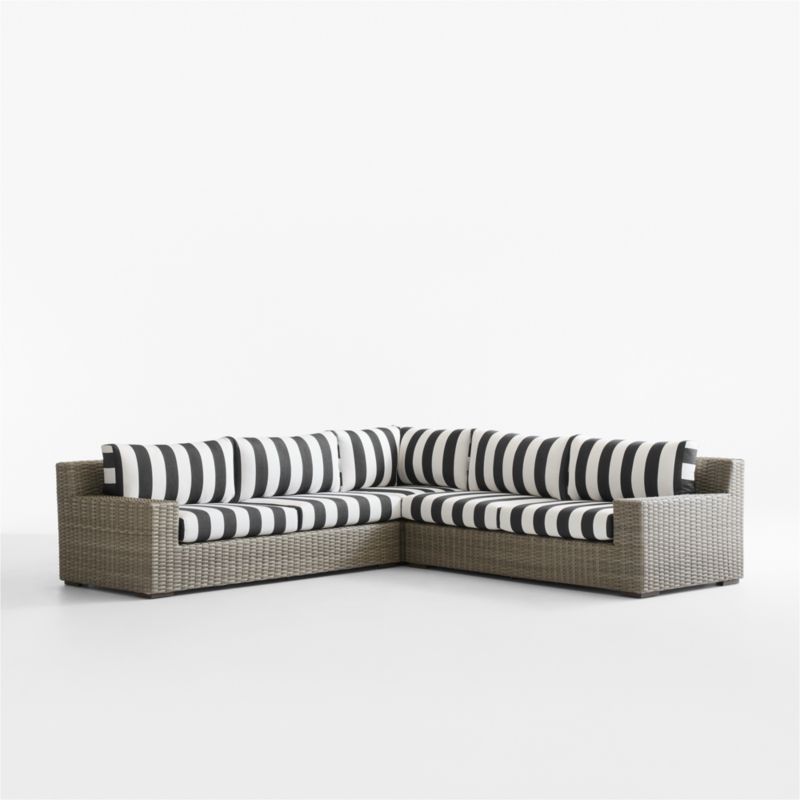 Abaco Resin Wicker 3-Piece L-Shaped Outdoor Sectional Sofa with Black and White Cabana Stripe Sunbrella ® Cushions