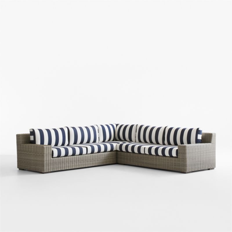 • View Abaco Resin Wicker 3-Piece L-Shaped Outdoor Sectional Sofa with Navy and White Cabana Stripe Sunbrella ® Cushions - image 2 of 15