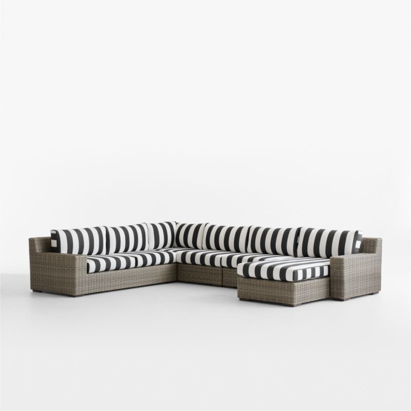 Abaco Resin Wicker 5-Piece Right-Arm Chaise Outdoor Sectional Sofa with Black and White Cabana Stripe Sunbrella ® Cushions