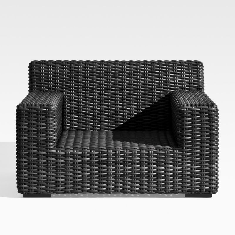 Low-slung and ready to lounge, our Abaco outdoor furniture collection extends an invitation to kick back and relax. Each chair is handwoven of dark charocla grey, weather-resistant resin wicker in a chunky, textural weave. The lounge chair's modern, boldly proportioned frame of lightweight aluminum offers a deep seat and wide, boxy arms that are perfect for hosting a cool drink. Add on a layer of comfort with custom-designed cushions in a range of colors (sold separately).
