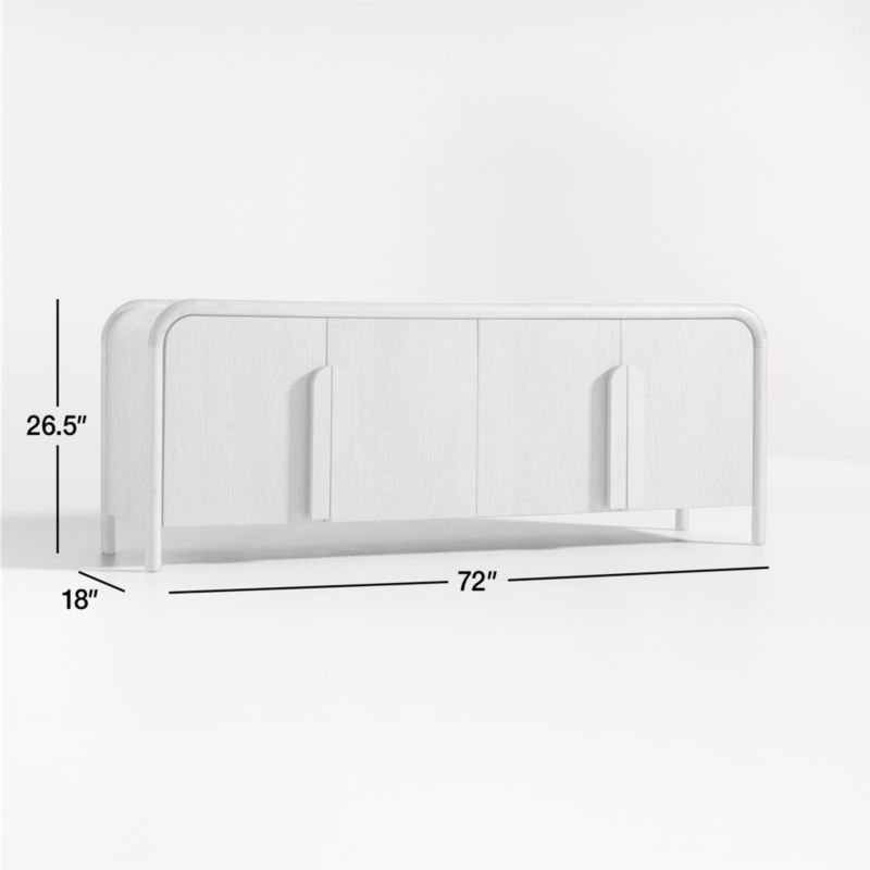 The traditional console takes a contemporary turn in Annie. Slender bentwood poles round clean corner arches to highlight the white oak showcased in flat-front doors. The rich grain is and brought into focus with a natural finish. Cleanly integrated into the arcing design, the long, rounded pulls open to reveal two adjustable shelves for stashing table linens, audio equipment or dining room serving ware. Pairing perfectly with our exclusive Annie storage cabinet, the Annie media console refreshes household storage with a look that's current and clean-lined.