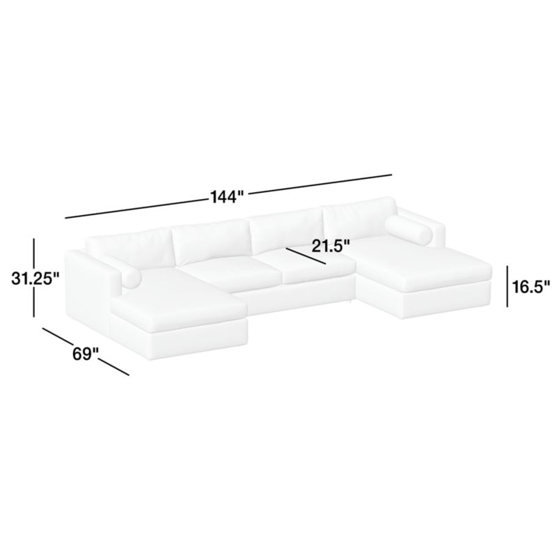 Aris 3-Piece U-Shaped Leather Sectional Sofa with Double Chaise Lounge