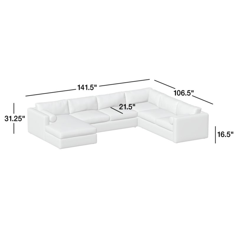 Aris 4-Piece L-Shaped Leather Sectional Sofa with Chaise Lounge31.25"Hheight106.5"Wwidth141.5"DdepthMeasurements are in inches.79.38Hheight270.51Wwidth359.41DdepthcmMeasurements are in centimeters.