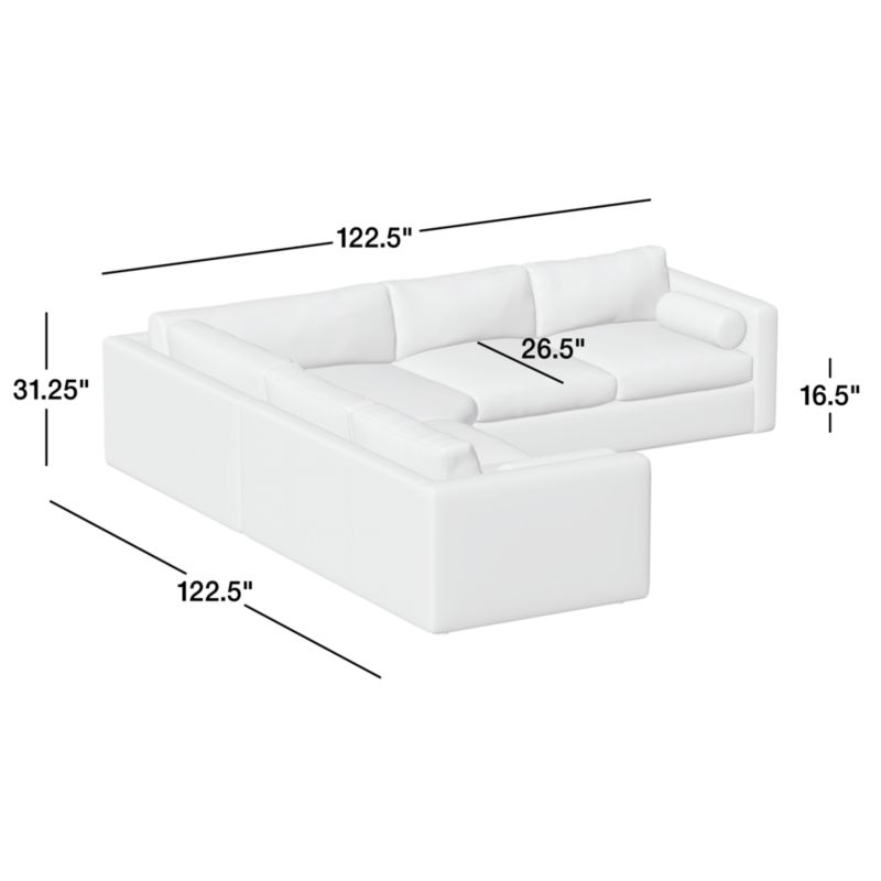 Aris Deep 3-Piece L-Shaped Wedge Sectional Sofa31.25"Hheight122.5"Wwidth122.5"DdepthMeasurements are in inches.79.38Hheight311.15Wwidth311.15DdepthcmMeasurements are in centimeters.