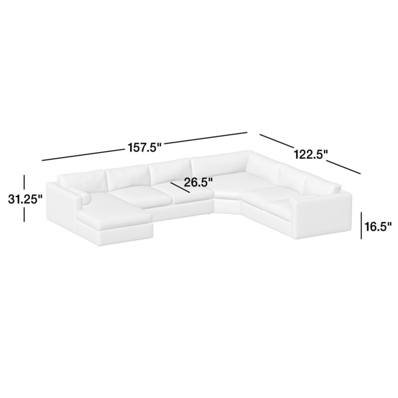 Aris Deep 4-Piece L-Shaped Wedge Sectional Sofa with Chaise Lounge31.25"Hheight157.5"Wwidth122.5"DdepthMeasurements are in inches.79.38Hheight400.05Wwidth311.15DdepthcmMeasurements are in centimeters.
