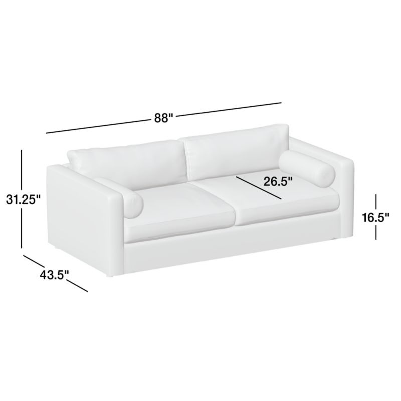 Aris Deep 88" Sofa31.25height88width43.5depthMeasurements are in inches.79.38height223.52width110.49depthMeasurements are in centimeters.