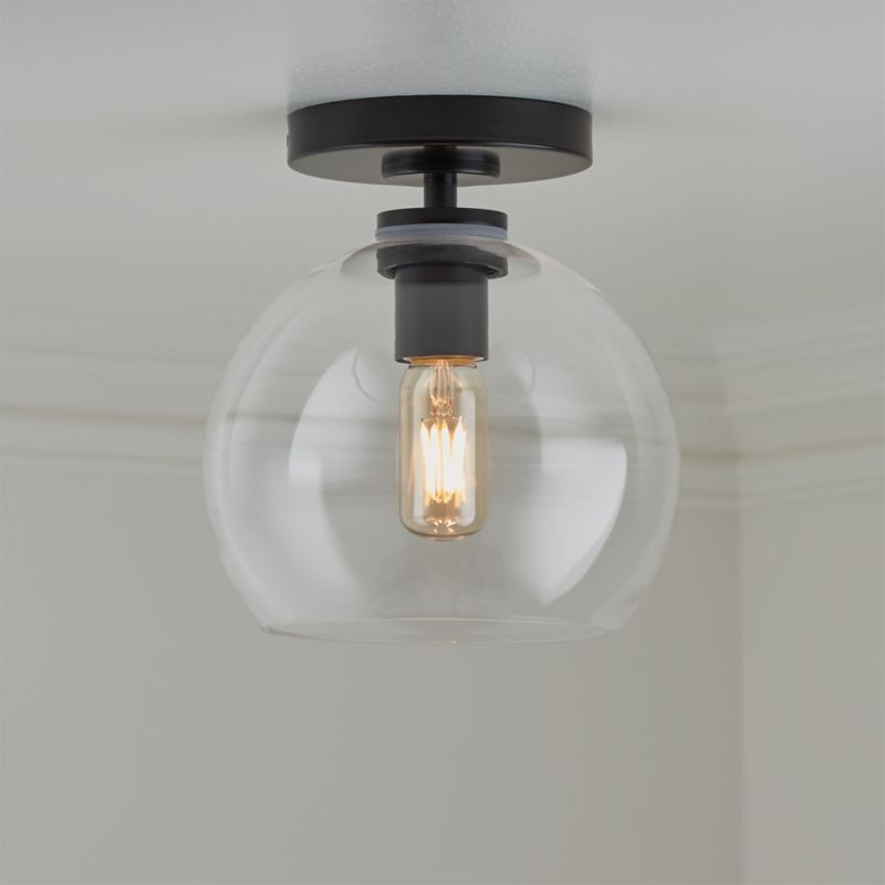 This beautifully rounded clear glass shade reveals the clean lines and streamlined geometry of an iron ceiling plate and socket finished in black. Arren strikes the perfect balance between the long, graceful form of a pendant and the low-profile design of a flush mount light. Mount one Arren Black Flush Mount Light with Clear Round Shade over a reading chair, two in a closet or three down a hallway. Designed by Amanda Ip of Slate Design exclusively for us, this pendant is part of our Arren collection of flexible lighting options with a custom feel. Our modern-yet-timeless Arren collection combines single- and multi-bulb ceiling lights and sconces in a variety of configurations and finishes with elegant glass shades available in three shapes and three finishes. Install two flush mount lights flanking your buffet and a matching round five-light pendant over your dining room table, or scatter coordinating light fixtures throughout your home for a modern mixed-materials look.