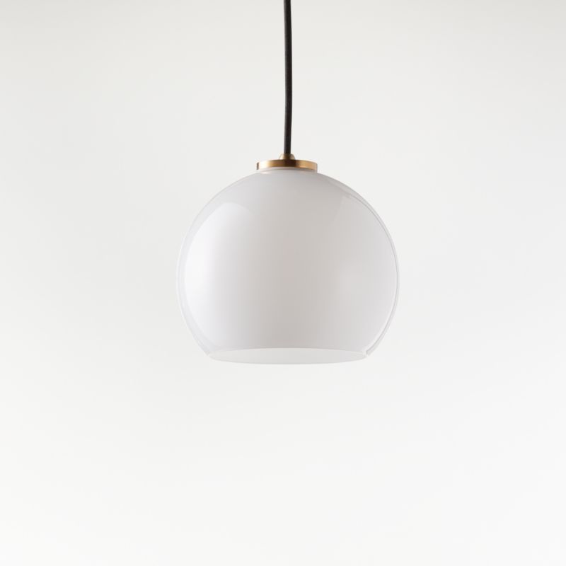 Arren Brass Single Pendant Light with Milk Round Shade 7.4"