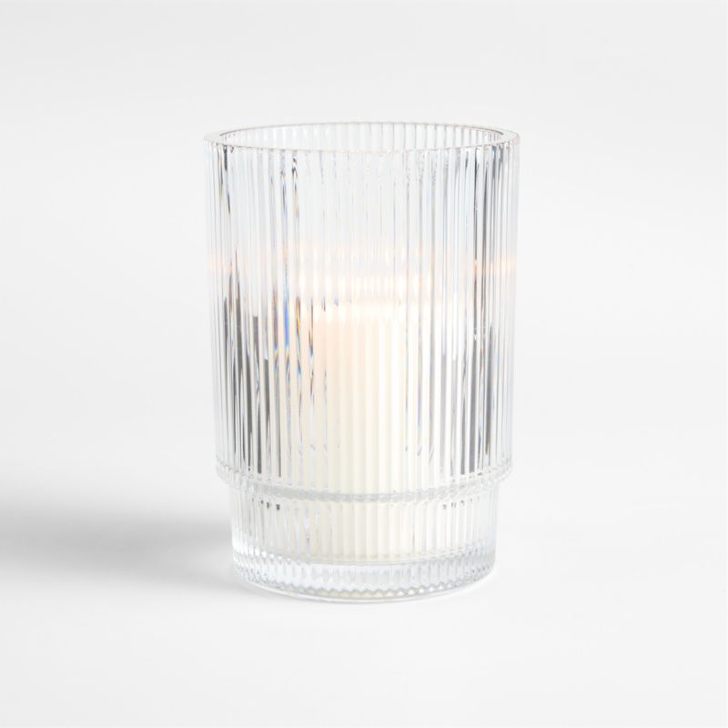 Inspired by our exclusive Atwell drinkware, this candlelight collection is a modern take on classic glass hurricanes. Sparkling tiers of ribbed clear glass shape the glam hurricane, the ridged surface catching the light while filtering candlelight to create an ethereal glow. Understated yet eye-catching, this medium candle holder mixes and matches effortlessly with the other pieces in our Atwell collection (and doubles as a vase) to set a sophisticated table.