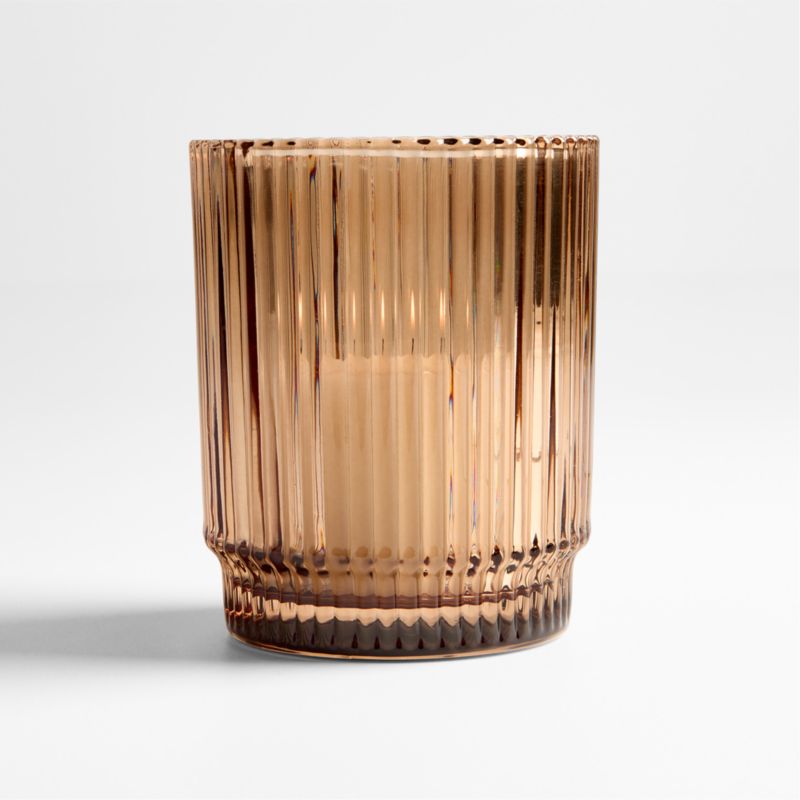 Inspired by our exclusive Atwell drinkware, this candlelight collection is a modern take on classic glass hurricanes. Sparkling tiers of ribbed glass shape a hurricane in a warm grey-brown hue. The ridged surface catches the light while filtering candlelight to create a moody, ethereal glow. Understated yet eye-catching, this small candle holder mixes and matches effortlessly with the other pieces in our Atwell collection (and doubles as a vase) to set a sophisticated table.