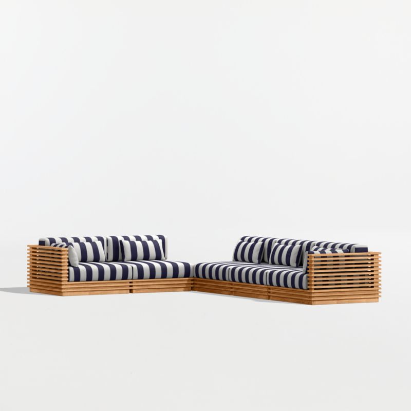 • View Batten Natural Teak 6-Piece L-Shaped Outdoor Sectional Sofa with Corner Coffee Table & Navy and White Cabana Stripe Sunbrella ® Cushions - image 6 of 13