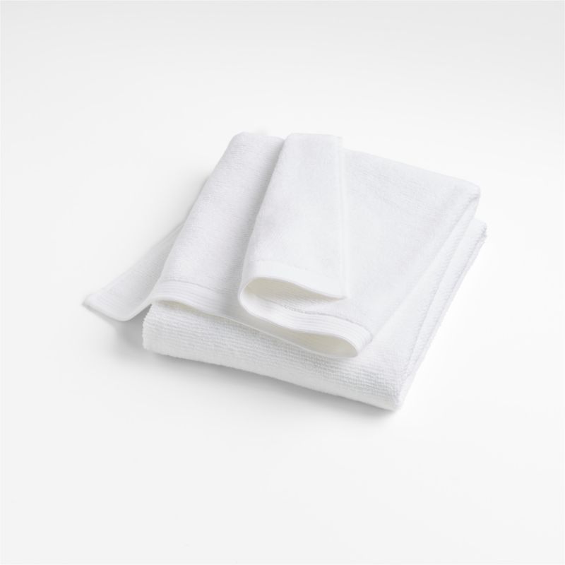 Bright white organic cotton yarn interwoven with specially treated threads creates a super-soft bath towel with antimicrobial powers. Lasting for the life of the textile, the SILVERbac treatment inhibits the growth of most bacterial pathogens and minimizes odors. Long-staple Turkish cotton provides durability, strength and softness. A Crate & Barrel exclusive, the antimicrobial organic cotton bath towel coordinates with our other bright white towels.
