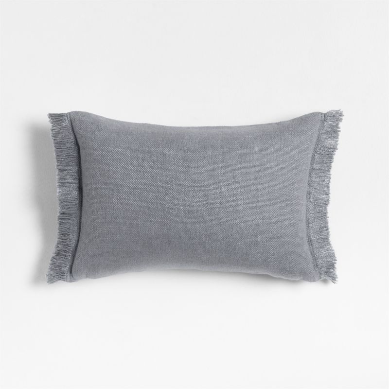 An irresistibly soft and slubby weave gives this throw pillow a relaxed look and feel that you'll want to snuggle up with every day. The inclusion of silky viscose adds a sophisticated sheen to the organic beauty of sustainably sourced linen fibers. Yarn-dyed smoky blue, the fringed pillow looks chic and casual tossed on a sofa, armchair or bed-especially paired with the matching throw blanket. Our lumbar pillow includes your choice of a plush feather-down or lofty down-alternative insert.