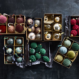 You can purchase high-quality, unique Christmas ornaments from us online 24/7, or at your local Crate & Barrel store. When possible, consider shopping in-person; we love celebrating the holidays, so head to your nearest location to enjoy our displays of Xmas ornaments, decor, stockings, tree accessories and more.