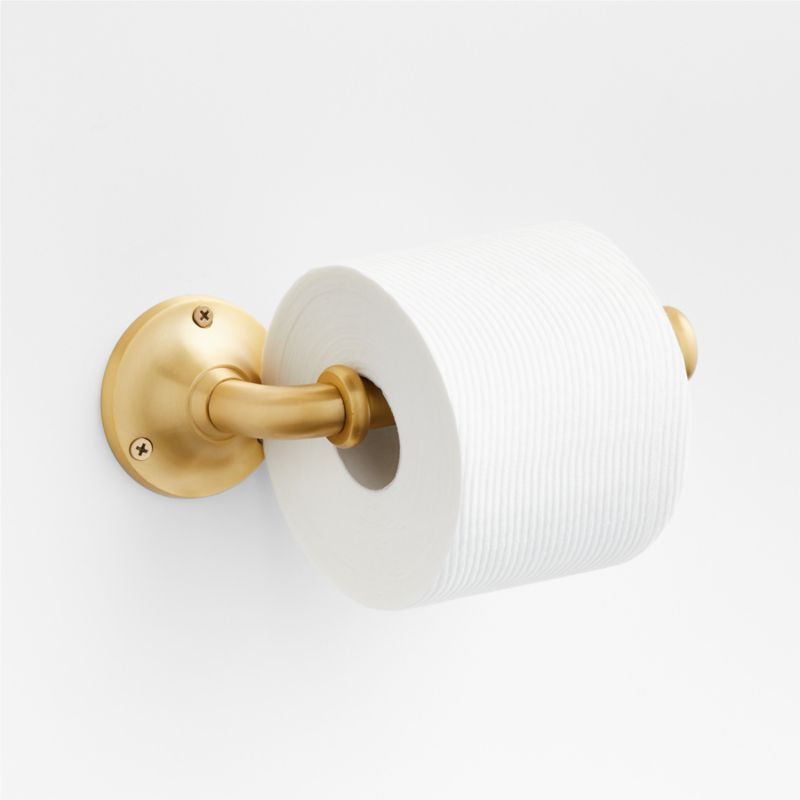 Sometimes it's the small things that pull a room together. That's why we've designed a hardware collection with modern silhouettes, clean lines and a touch of tradition to give your bathroom that perfect finishing touch. We named this toilet paper holder Classic for a reason—a slender rod with raised accents curves into a round, tapered wall plate for a timeless look. Crafted of brass with a gleaming brushed finish, the wall-mounted fixture has smooth edges and an open end for effortless roll replacement. Hardware is included to make it easy to refresh the look of your powder room or bathroom.
