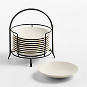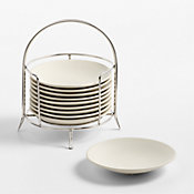 Our Craft appetizer plate brings warm minimalism to cheese board offerings and casual snacks. A natural linen-toned glaze coats the clean coupe curves with artisanal appeal.