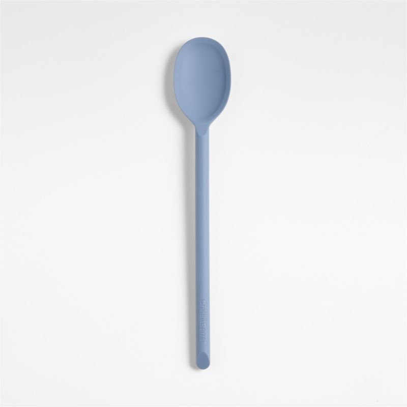 Soft-touch, heat-resistant and oh, that gorgeous slate blue. Stir, scoop and serve with this silicone spoon that coordinates beautifully with our signature cookware and bakeware in the same hue. Constructed with a nylon core for strength, the utensil ably stirs the thickest sauces, doughs and batters—or folds the most delicate meringues. Its flexible, tapered edges scrape the bowl, blender or pan clean without damaging non-stick finishes. We love the way the refined beveled edge finishes the elongated handle with a dynamic detail. Combine the dishwasher-safe spoon with the other exquisitely proportioned utensils in our exclusive Crate & Barrel collection for a well-outfitted workspace that's up to any cooking challenge.