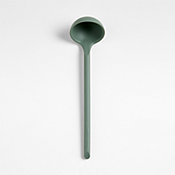 Scoop and serve soups, stews and sauces with our signature silicone ladle. Constructed with a nylon core for strength, the silicone head ably handles the thickest chili, bisque or bolognese. Soft-touch silicone in a fresh grey-green hue inspired by thyme won't damage non-stick pans and resists scratches and heat up to 500°F. We love the way the refined beveled edge finishes the elongated handle with a dynamic detail. Combine the dishwasher-safe ladle with the other exquisitely proportioned utensils in our exclusive Crate & Barrel collection for a well-outfitted workspace that's up to any cooking challenge.