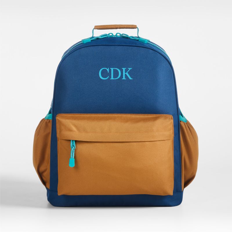 • View Dreamer Colorblock Navy and Ochre Large Kids Backpack with Side Pockets - image 1 of 16