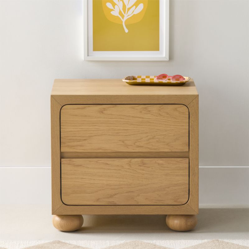 Emery Natural Oak Wood 2-Drawer Kids Nightstand
