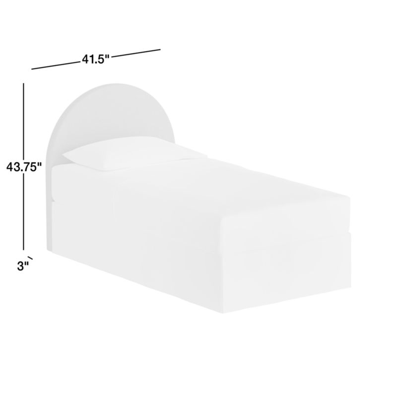 We've taken the edge off the traditional headboard to create a piece that's perfect for a kid's bedroom. Our Emma Upholstered Headboard pairs an arched shape with softly textured upholstery to create a cushy backdrop for reading and dreaming. In an understated deep green hue, it's a piece that's playful yet timeless enough to work with any decor—even as your child's style changes over the years.