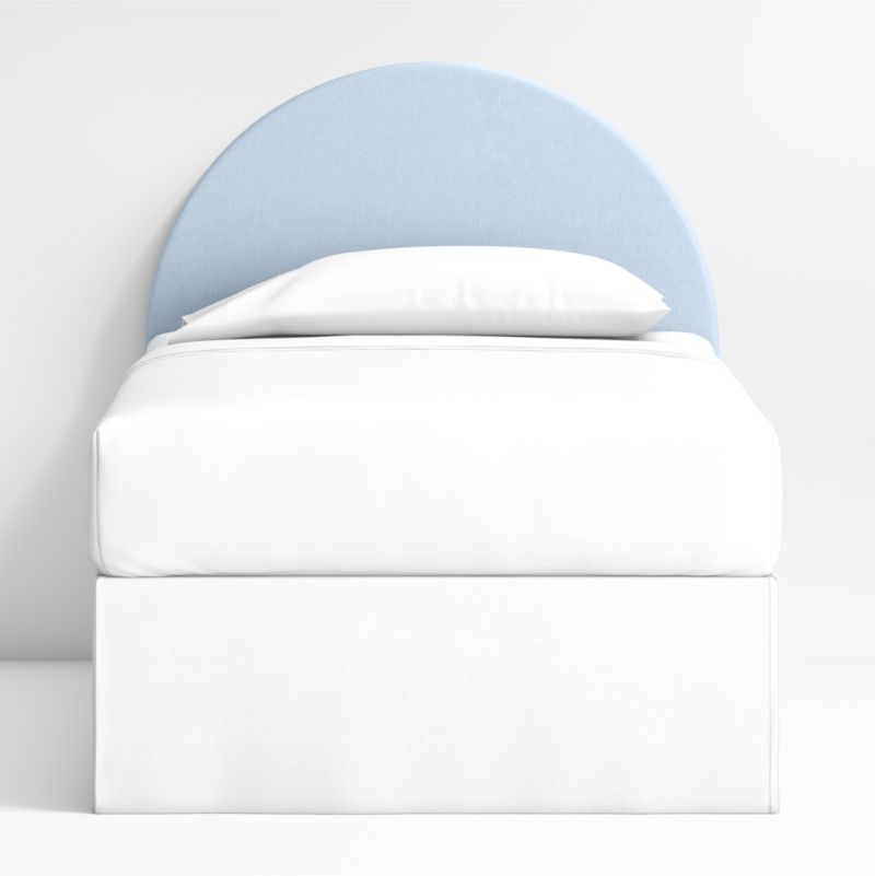 We've taken the edge off the traditional headboard to create a piece that's perfect for a kid's bedroom. Our Emma Upholstered Headboard pairs an arched shape with softly textured upholstery to create a cushy backdrop for reading and dreaming. In an understated light blue hue, it's a piece that's playful yet timeless enough to work with any decor—even as your child's style changes over the years.