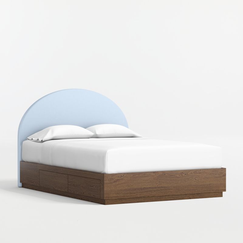 • View Emma Light Blue Upholstered Kids Full Headboard with Deep Brown Wood Storage Base - image 3 of 6