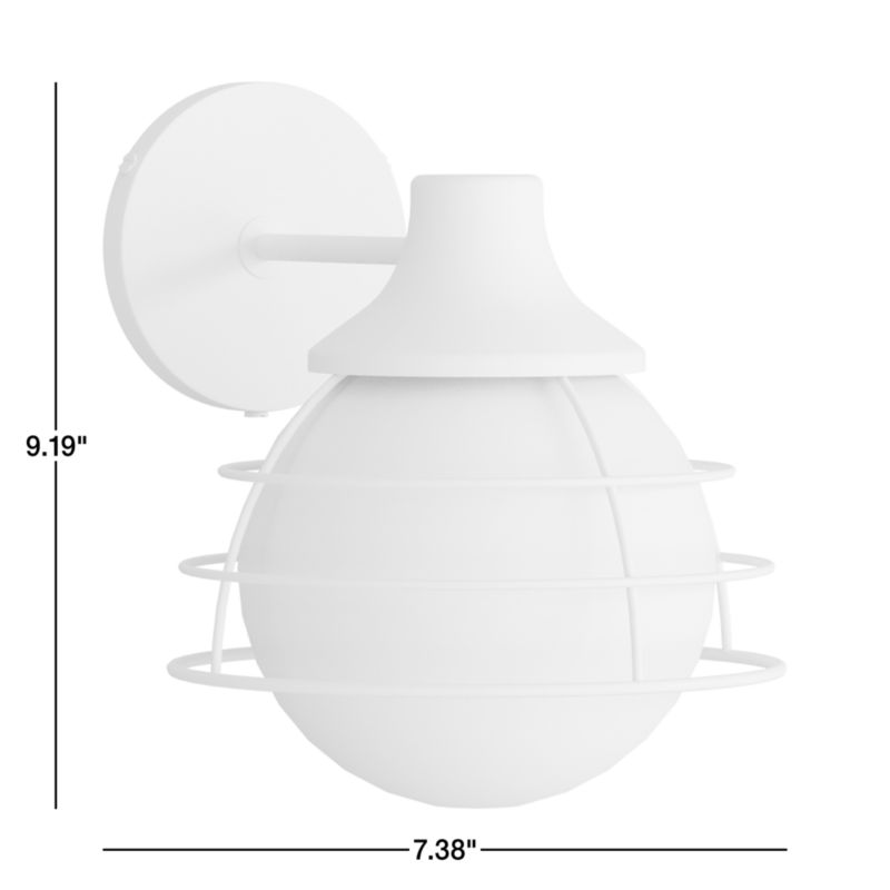 Our modern take on the iconic industrial cage light opens up the wire frame to show off the glowing white globe within. The high-contrast sconce pairs a blackened steel finish with etched glass that casts a soft illumination. Designed as an update to classic outdoor lighting, Fairfax is right at home on a front porch, flanking a garage door or brightening a balcony.