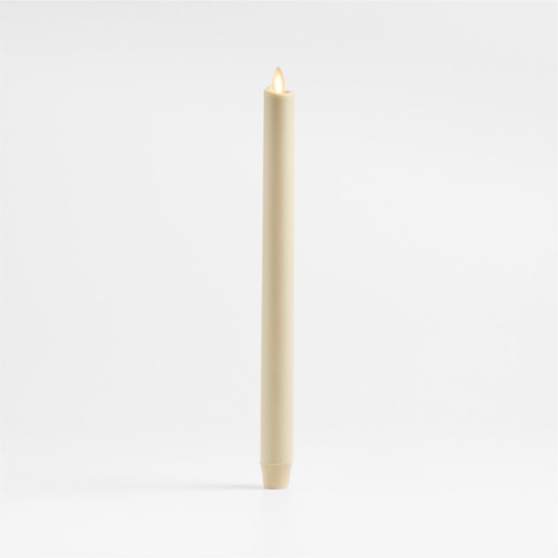 Our flameless candle fools the eye with its lifelike flickering, warm glow and charming faux flame dancing atop a real wax taper. Safe and mess-free, the ivory battery-powered candle creates atmosphere and gentle illumination on the dining table (as well as anywhere a burning candle would be impractical). Use the automatic timer to enjoy five hours of delightful and worry-free candlelight every evening.