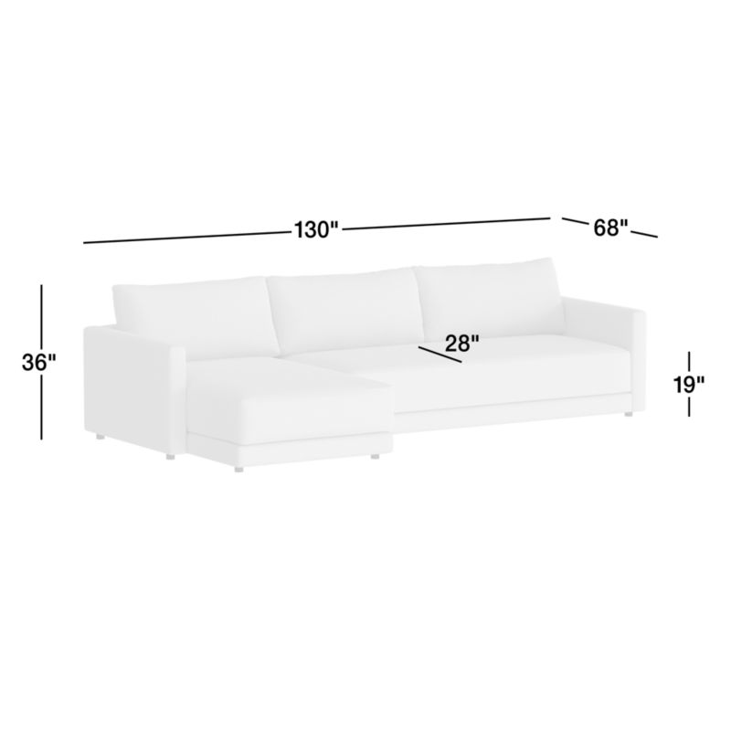 Gather Deep 2-Piece Bench Sectional Sofa with Extra Wide Chaise Lounge26height130width68depthMeasurements are in inches.66.04height330.2width172.72depthMeasurements are in centimeters.