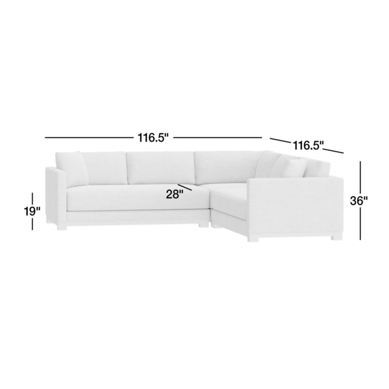 Gather Deep Wood Base 3-Piece L-Shaped Bench Sectional Sofa26height116.5width116.5depthMeasurements are in inches.66.04height295.91width295.91depthMeasurements are in centimeters.