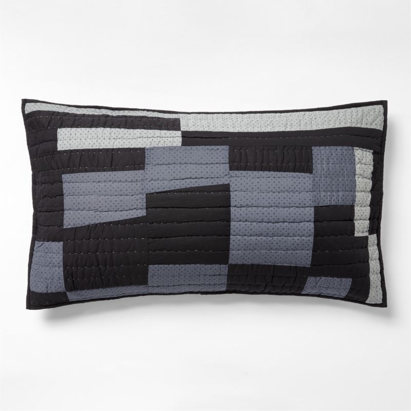 This heirloom-quality pillow sham was designed exclusively for Crate & Barrel by Andrea Pettway-Williams and Cheyenne Pettway, two members of the legendary Gee's Bend quilting community. The mother-daughter duo have been quilting all of their lives, from matching fabric as children to designing textile masterpieces as they honed their skills. Mixing solids and charming vintage-inspired prints in a palette of blue hues, the organic cotton voiles and slubbed weaves add texture to the dynamic checkerboard pattern. Hand-quilted by talented artisans based on the quilters' original designs, this sham and its coordinating quilt (sold separately) brings a work of art—and a piece of history—home.