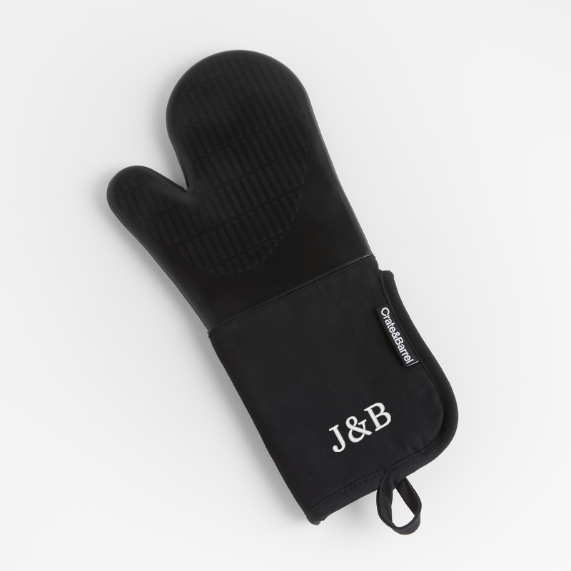 In stock and ready to ship Loading...Crate & BarrelSKU 338012Personalized Silicone Black Oven MittCAD 49.95includes CAD 15 personalization feeFree Shipping Eligible0 of 1 purchasedAdd to Cart