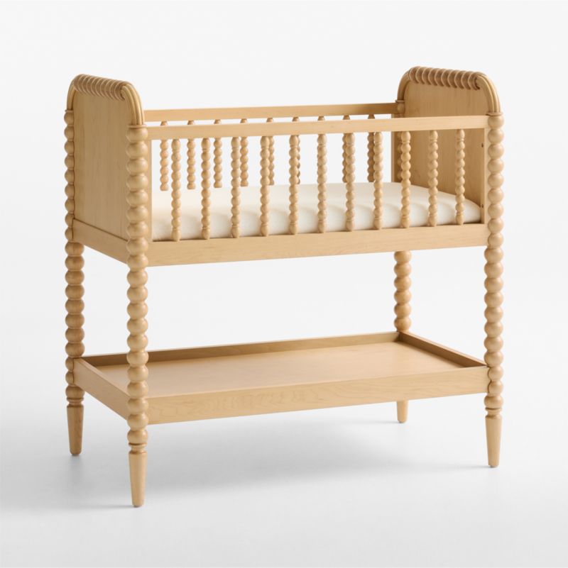 A bestseller for a reason, our Jenny Lind Heirloom Baby Bassinet is a timeless piece for the nursery. The iconic collection, with its intricate wood turnings, has been made in the same location with the same classic design for more than 20 years—but its modern sensibility means it hasn't aged a day. Each spindle is made from a single piece of wood, then hand-sanded to capture every gorgeous detail. The bassinet's included mattress pad makes it a cozy first sleep space for baby, and the built-in lower shelf is perfect for keeping supplies close at hand. Fun fact: This forever classic is named for the 19th century opera singer Jenny Lind, who was the pop icon and influencer of her day.