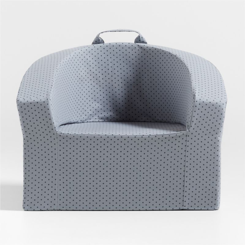 Meet the Barrel Chair, a sought-after silhouette for grown-up spaces, now sized for kids! With just enough bounce and sized just right, this comfy chair has a frameless foam design that holds its shape through plenty of play and is a breeze to put together. The playful Blue Star cover is 100% organic cotton canvas so it's supersoft, extra-durable and perfect for cozying up. Ready for family game nights or morning cartoons, the chairs are easy to tote around thanks to the study handle up top. Pro parent tip: The zippered cover is easy to remove and toss in the wash.
