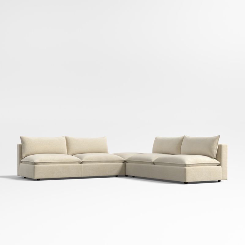 Lotus Deep Modular 3-Piece L-Shaped Armless Sectional Sofa with Ottoman