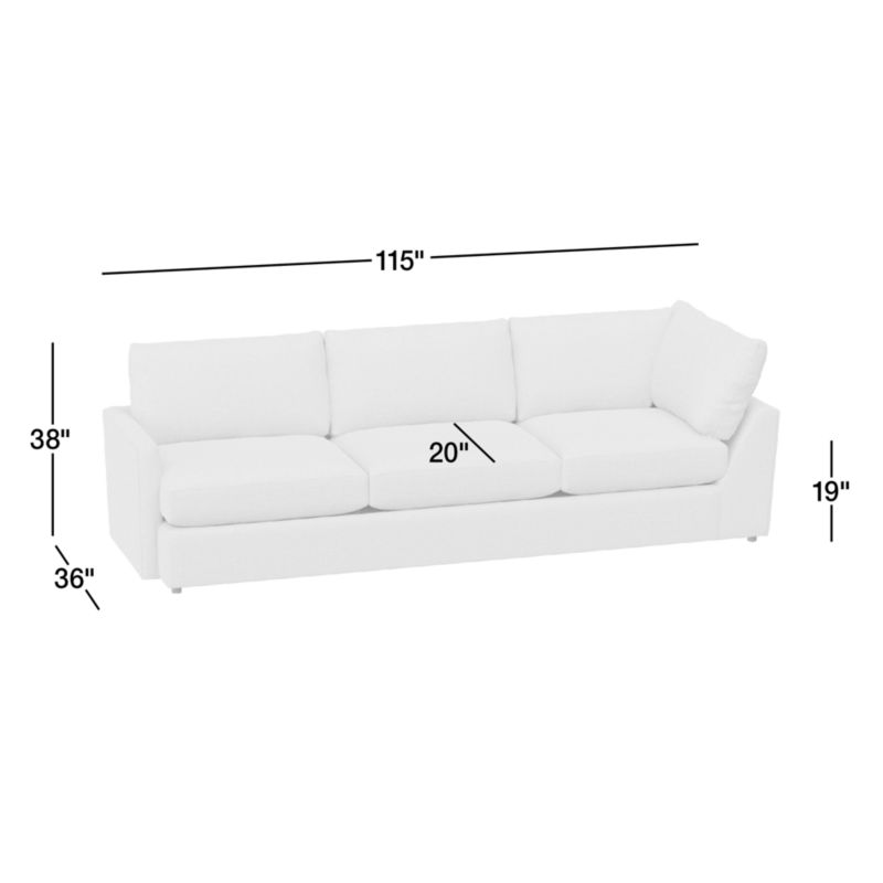 Lounge Classic Left-Arm Corner Sofa Sectional Piece26"Hheight115"Wwidth36"DdepthMeasurements are in inches.66.04Hheight292.1Wwidth91.44DdepthcmMeasurements are in centimeters.