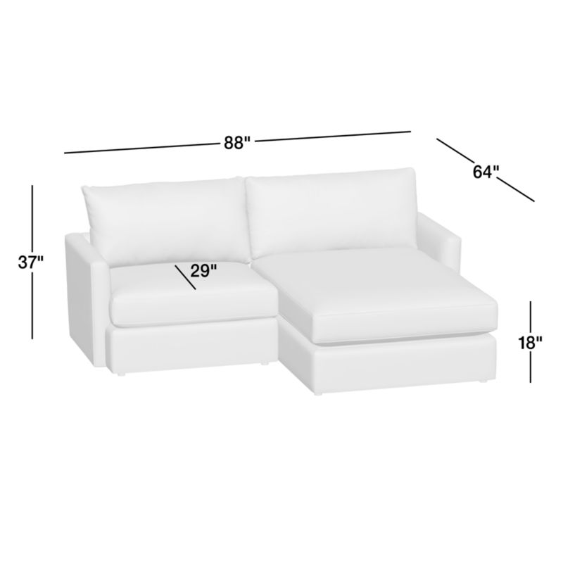 Lounge Deep 2-Piece Small Space Sectional Sofa with Chaise Lounge25height88width64depthMeasurements are in inches.63.5height223.52width162.56depthMeasurements are in centimeters.