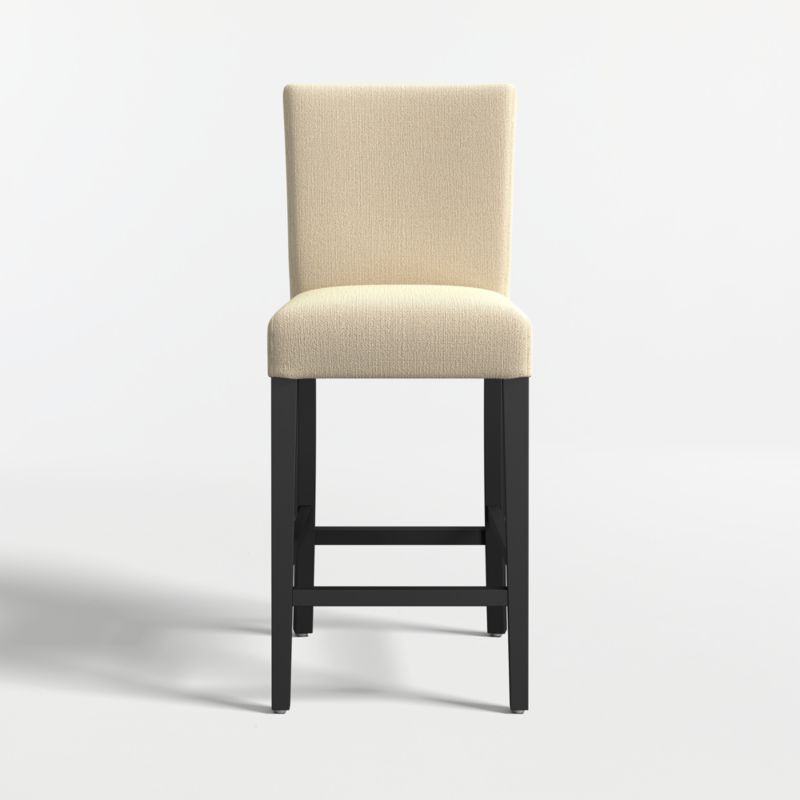 Designed for comfort with design-conscious style, our Lowe counter stool is meant for lingering at a kitchen counter or high dining table. Fabric upholstery tailors the cushioned tight seat and back, partnering perfectly with sustainably sourced hardwood legs.