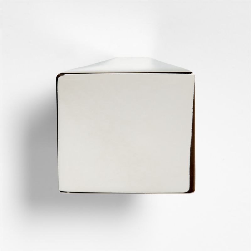 Tapering to a cropped pyramid, our Lura square knob finishes drawers and cabinet doors with a geometric pop. The polished nickel finish shines softly, accenting storage furniture or built-ins like a modern, minimalist piece of silver jewelry. Crafted of solid brass for a satisfying weight and crisp design, the knob installs easily for a quick kitchen, bathroom or bedroom refresh.