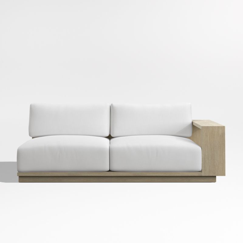 Mallorca 76" Wood Right-Arm Outdoor Sofa with Cast Silver Sunbrella ® Cushions