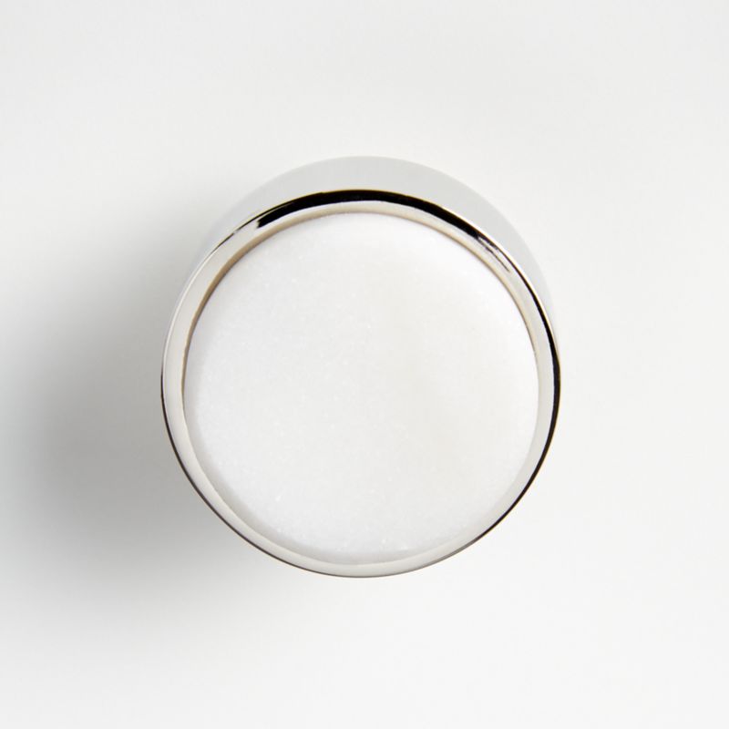 Each one of these handsome knobs begins with a hand-selected piece of white marble that's cut, shaped and polished to fit perfectly in a cylindrical setting finished in polished nickel. An instant update for the kitchen, bathroom or your favorite piece of furniture, the knob adds a touch of glam to cabinets and drawers. Each marble-and-nickel knob is handcrafted and easy to install.