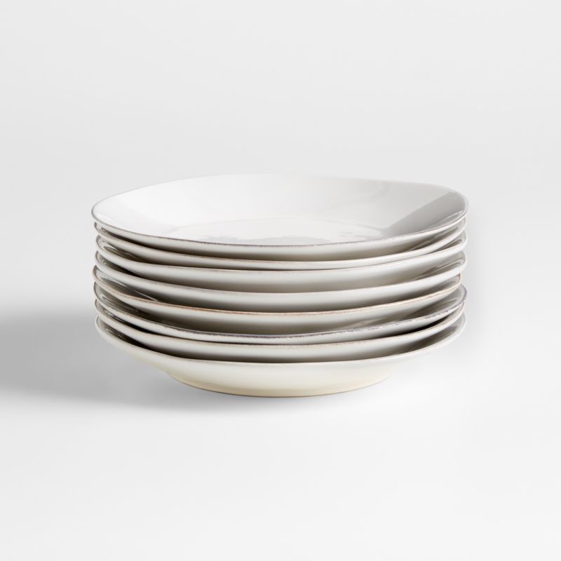 Artisanal ceramic shapes are glazed a soft white with subtle hand-antiquing on the freeform rims. The durable stoneware is sturdy enough for use every day, and the unique form suits organic modern tables and is plenty chic for elegant occasions. Microwave-safe and oven-safe up to 300°F, our salad plate is also dishwasher-safe for easy cleanup after dinner parties or everyday meals. Set a coordinated table with our Marin white bowls, dinner plates, mugs and serving pieces, all Crate and Barrel exclusives.