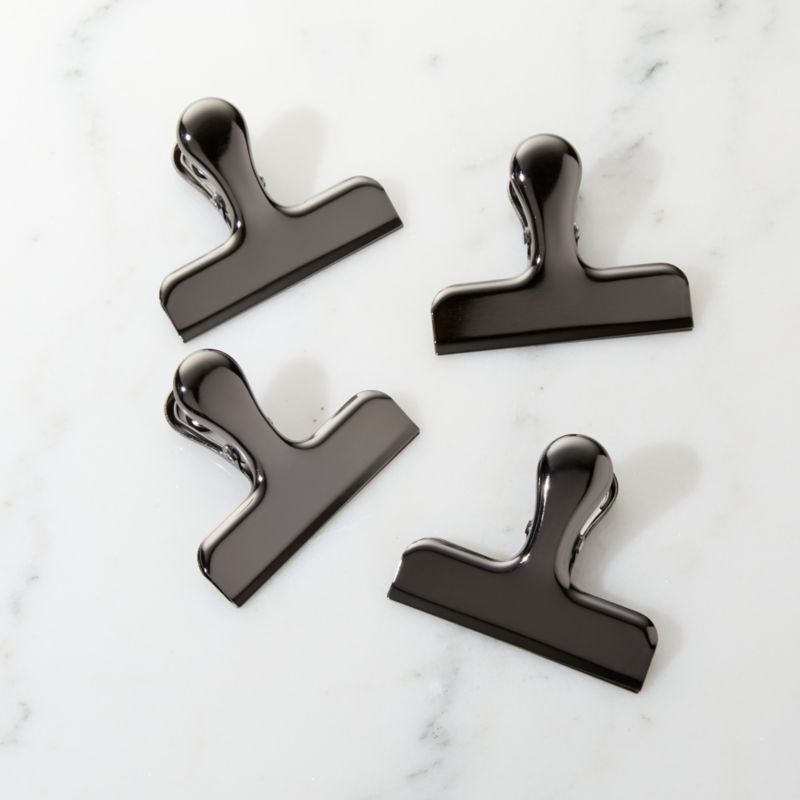 Keep chips fresh and tasting—and looking—their best with this set of stainless steel magnetic chip clips with a graphite finish. Magnets keep the four clips conveniently at hand on the refrigerator, where they look sleek and modern in gleaming metal.