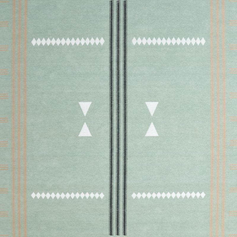 Make a graphic statement in your kid's favorite spaces with this striking rug that boasts a handwoven, silk-like texture and lustrous sheen. Geometric ivory shapes and grey and beige stripes in contrasting weaves give this rug beautiful dimension and depth. In an earthy green hue, its abstract design and cotton-chenille blend is perfect for centering a space with sophisticated style and plush cushioning.