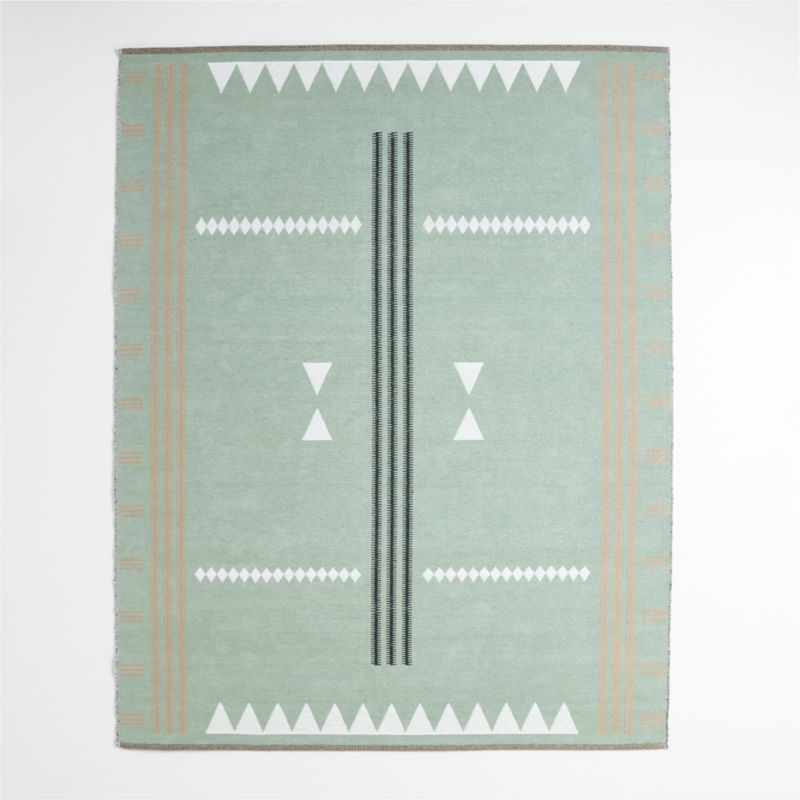 Make a graphic statement in your kid's favorite spaces with this striking rug that boasts a handwoven, silk-like texture and lustrous sheen. Geometric ivory shapes and grey and beige stripes in contrasting weaves give this rug beautiful dimension and depth. In an earthy green hue, its abstract design and cotton-chenille blend is perfect for centering a space with sophisticated style and plush cushioning.