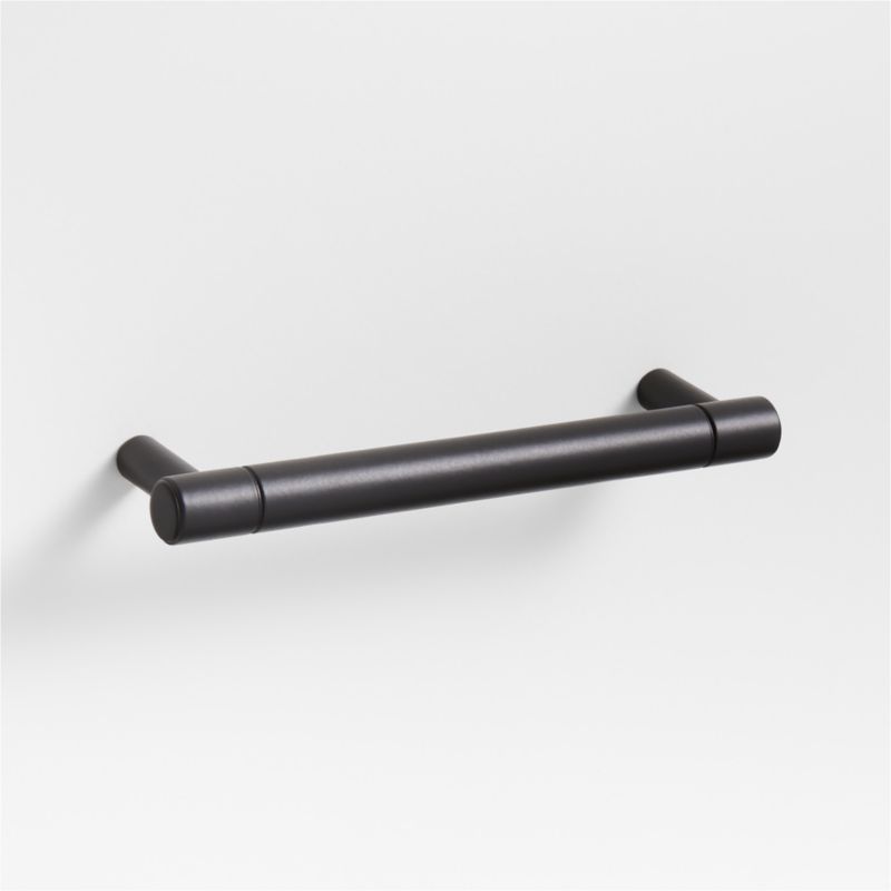 Sometimes it's the small things that pull a room together. That's why we've designed a hardware collection with modern silhouettes and a touch of tradition to give your kitchen and bathroom that perfect finishing touch. Grooved detailing lends an industrial vibe to this refined bar pull. Crafted of brass, the four-inch pull has an understated geometry enhanced by the matte black finish. Hardware is included to make it easy to refresh the look of dresser drawers, cabinet doors and vanities.