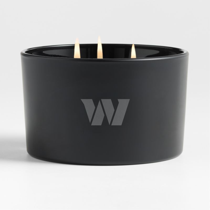 Celebrate your team on game day (and every day). Utterly modern in monochromatic black. Our Onyx three-wick candle infuses the air with the invigorating scents of cypress, eucalyptus and thyme grounded by the richness of rose, myrrh and sandalwood. Packaged in a black gift box, the matte black glass vessel filled with black wax has a bold look that adds a touch of drama to your coffee table, dresser or mantel. Part of our exclusive Monochrome scent collection, the No. 02 Onyx candle is a Crate & Barrel exclusive.