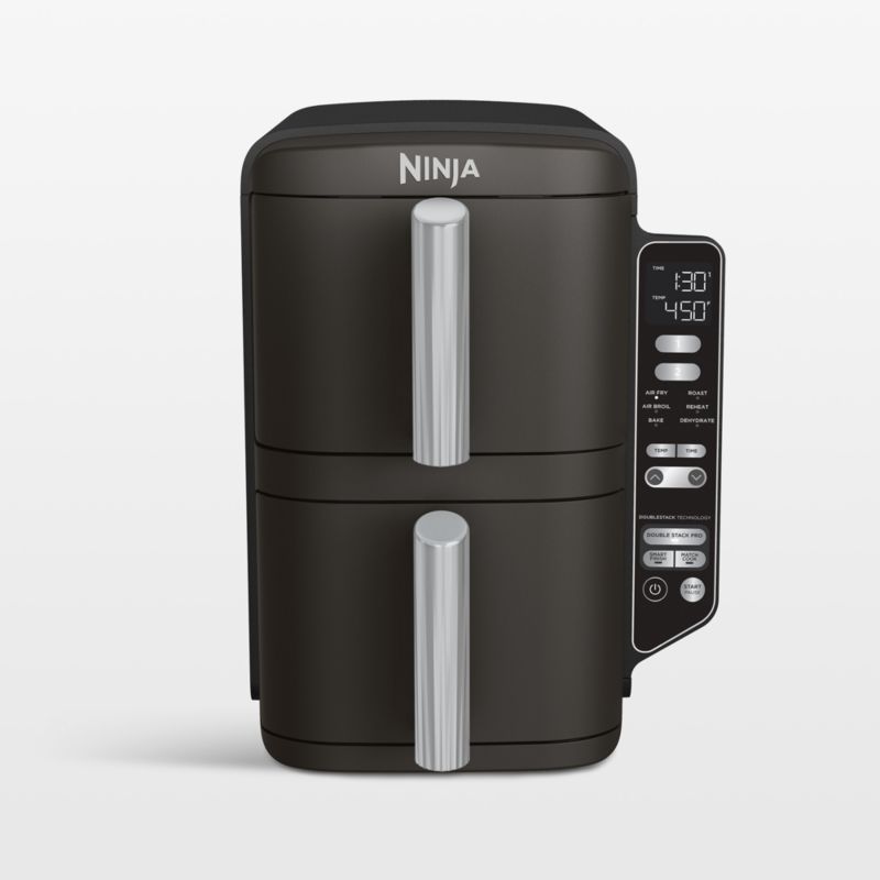 This ingenious air fryer prepares perfectly crispy fries, hot wings, balsamic brussels sprouts and Parmesan mushrooms all at the same time. Featuring two independent heaters, fans and fryer baskets—each with two levels per basket—the DoubleStack technology lets you cook on two levels at different times and temperatures. Use the Smart Finish feature to ensure everything's ready to serve at once, or use the Match Cook function to cook the same in both baskets. Boasting the ability to air fry, air broil, roast, bake, reheat and dehydrate, the slim two-level Double Stack is a great choice for space-challenged countertops.